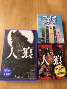遊べるゲームが増えました ・ファイブタワーズ ・人狼 ・人狼コンプリート ファイブタワーは先日お客様に教えて頂き、即ポチしました!人狼はオープン当初から人狼会をやりたいとのお声がありましたので購入しました!!